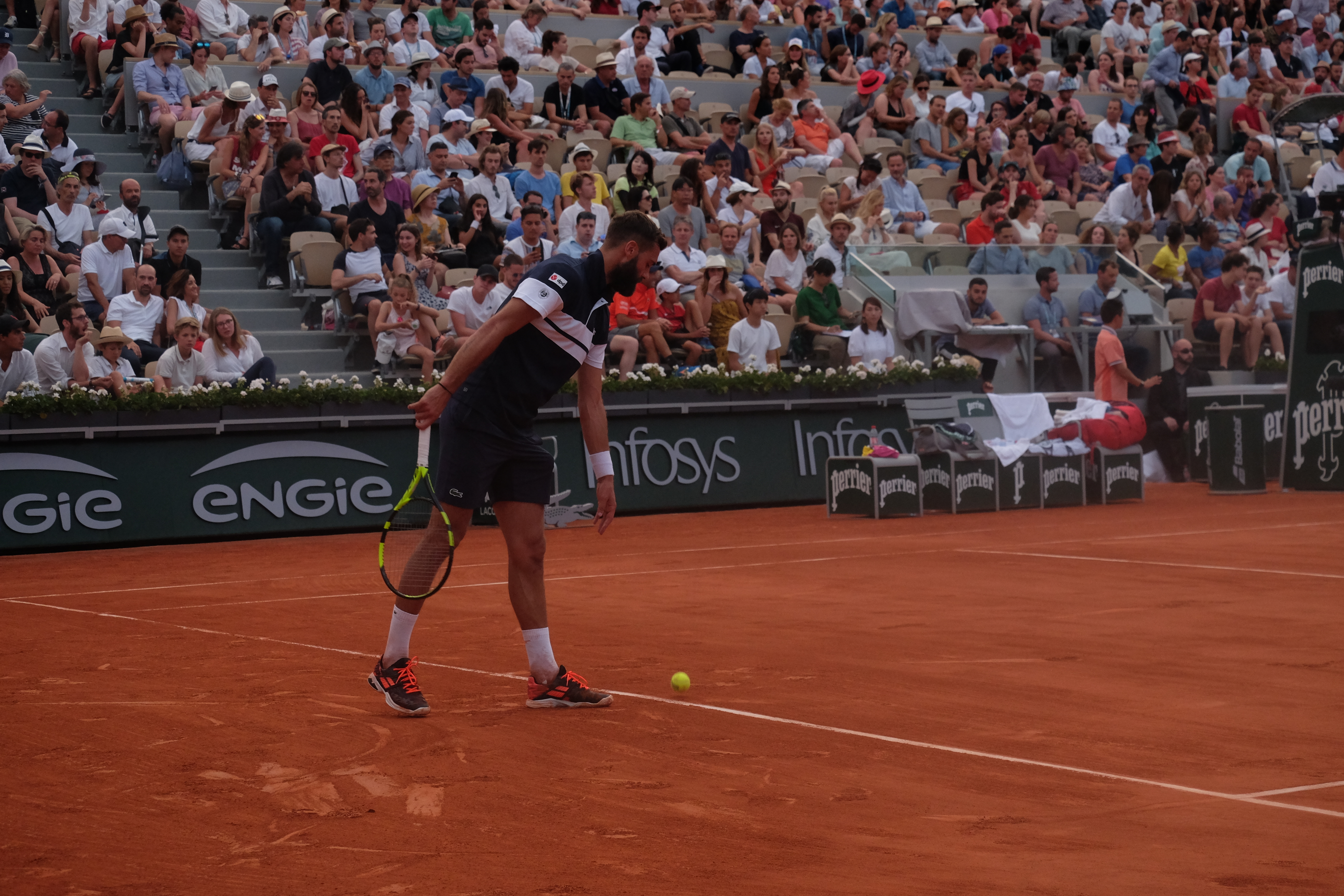 Will and I made a beeline for the front row of the Nishikori/Paire match. It was incredible to be this close, and Paire is French, so the crowd was unreal.