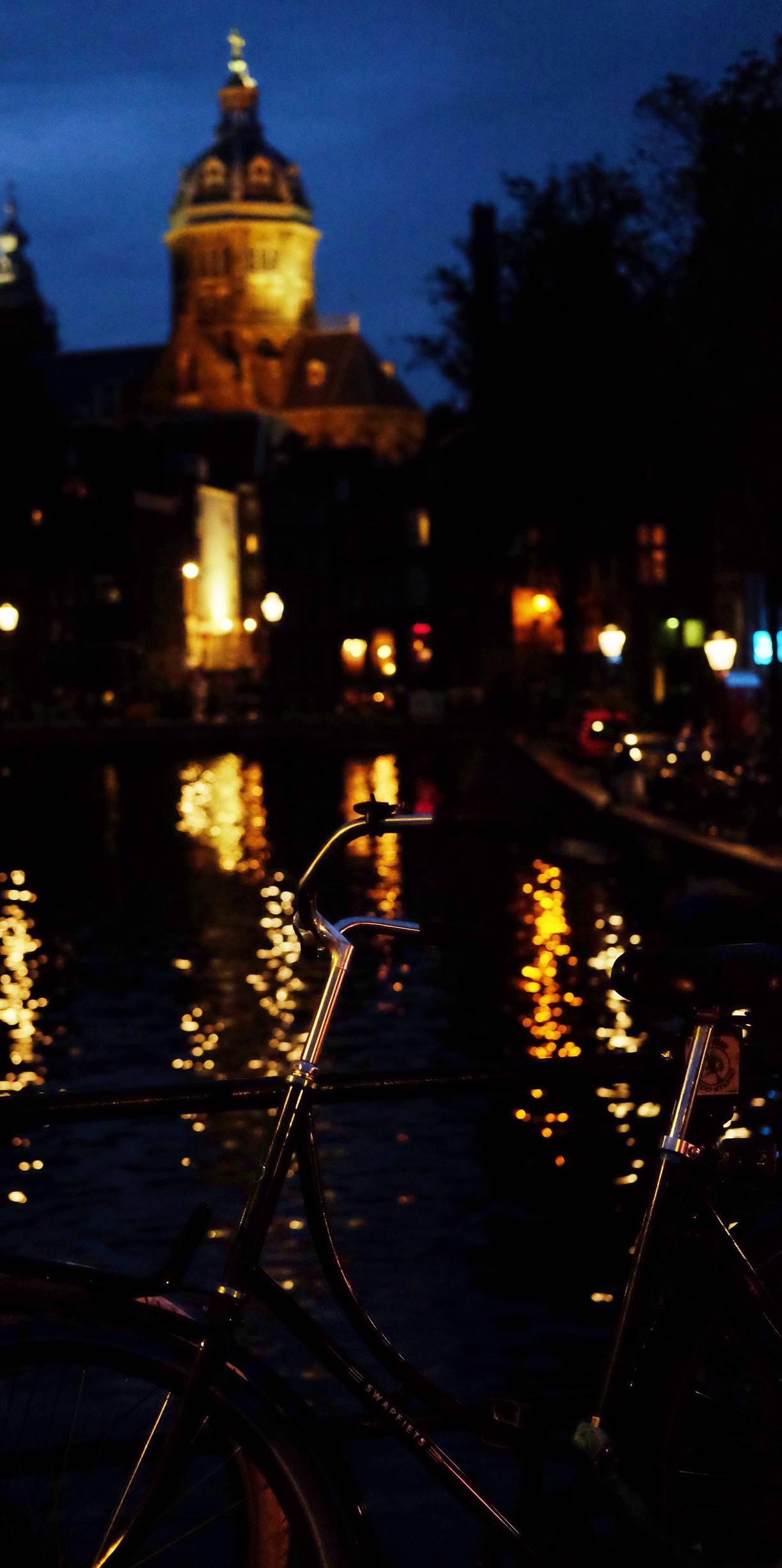 Biking around Amsterdam at night was so fun.