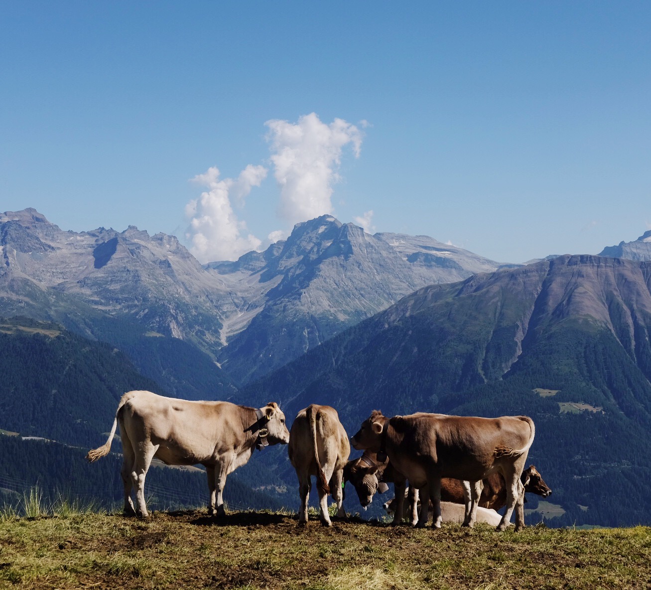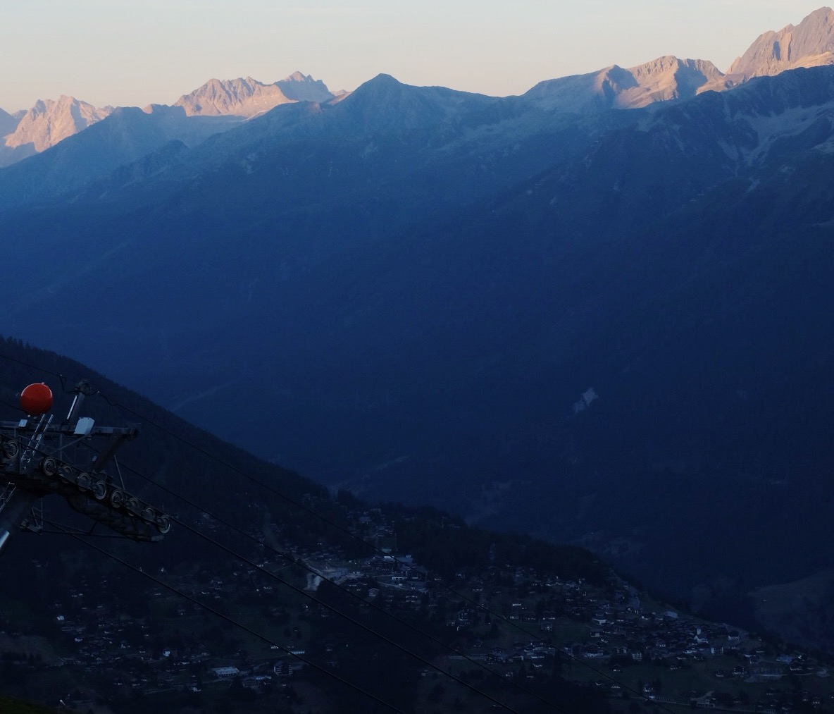 The hike ended in a tiny town in the mountains called Fiescheralp. Tolu ran off to catch the last gondola down and a train to Basel, where he hung out with Elisa and swam in the Rhine river. I spent the night in Fiescheralp to hang out with the mountain cows and enjoy the views.