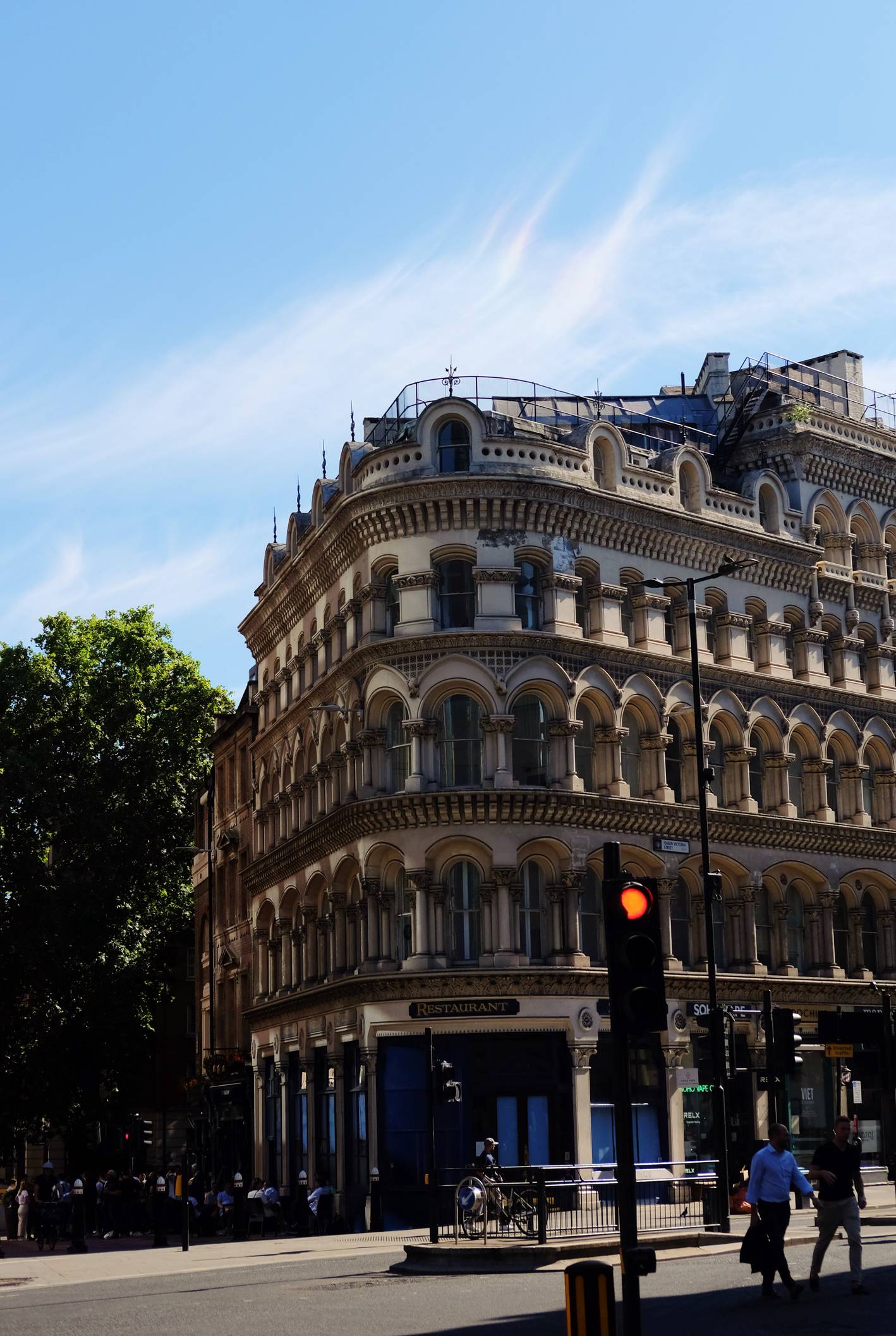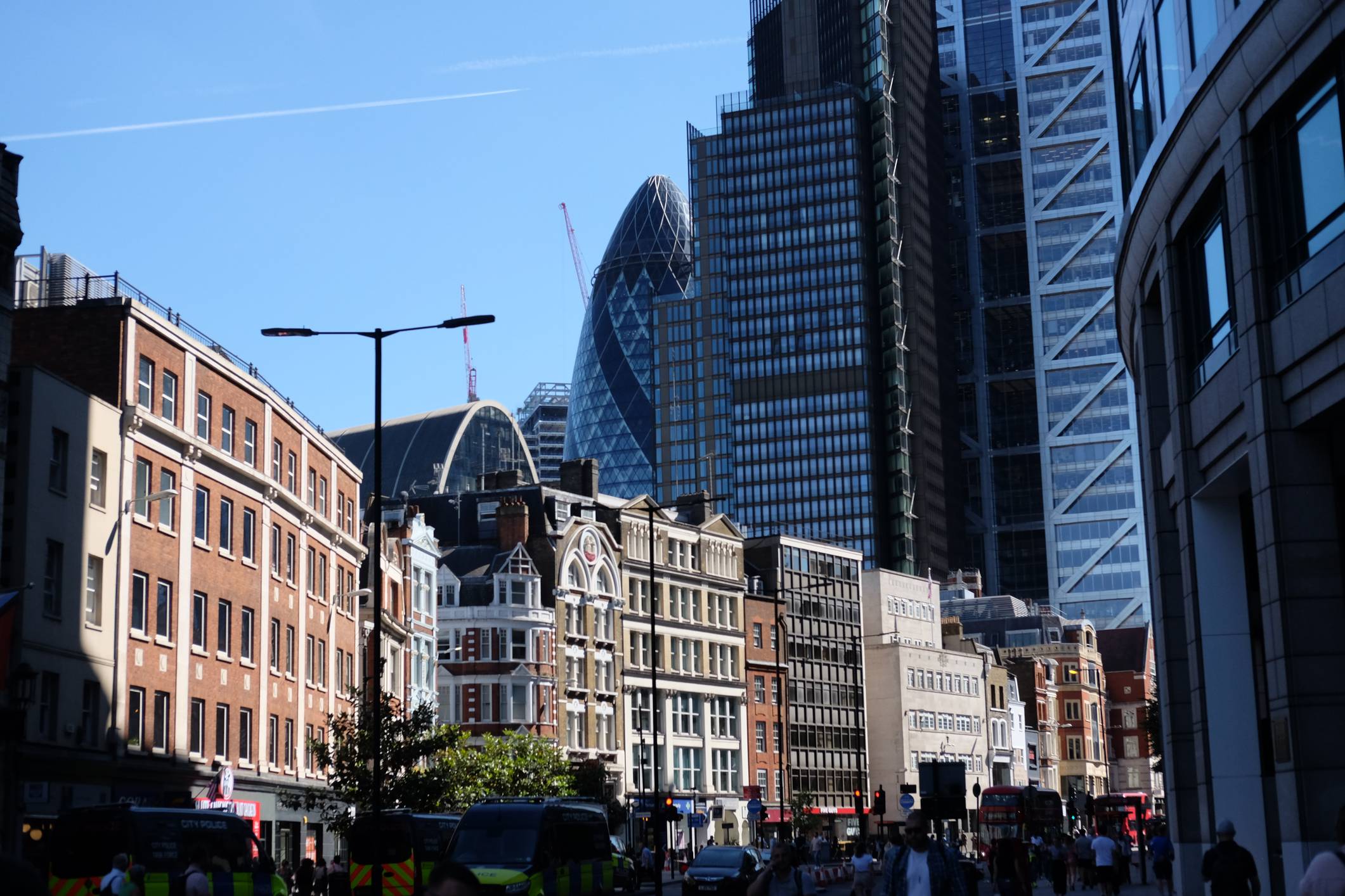 Look at the contrast between the old historic buildings and the new shiny skyscrapers.