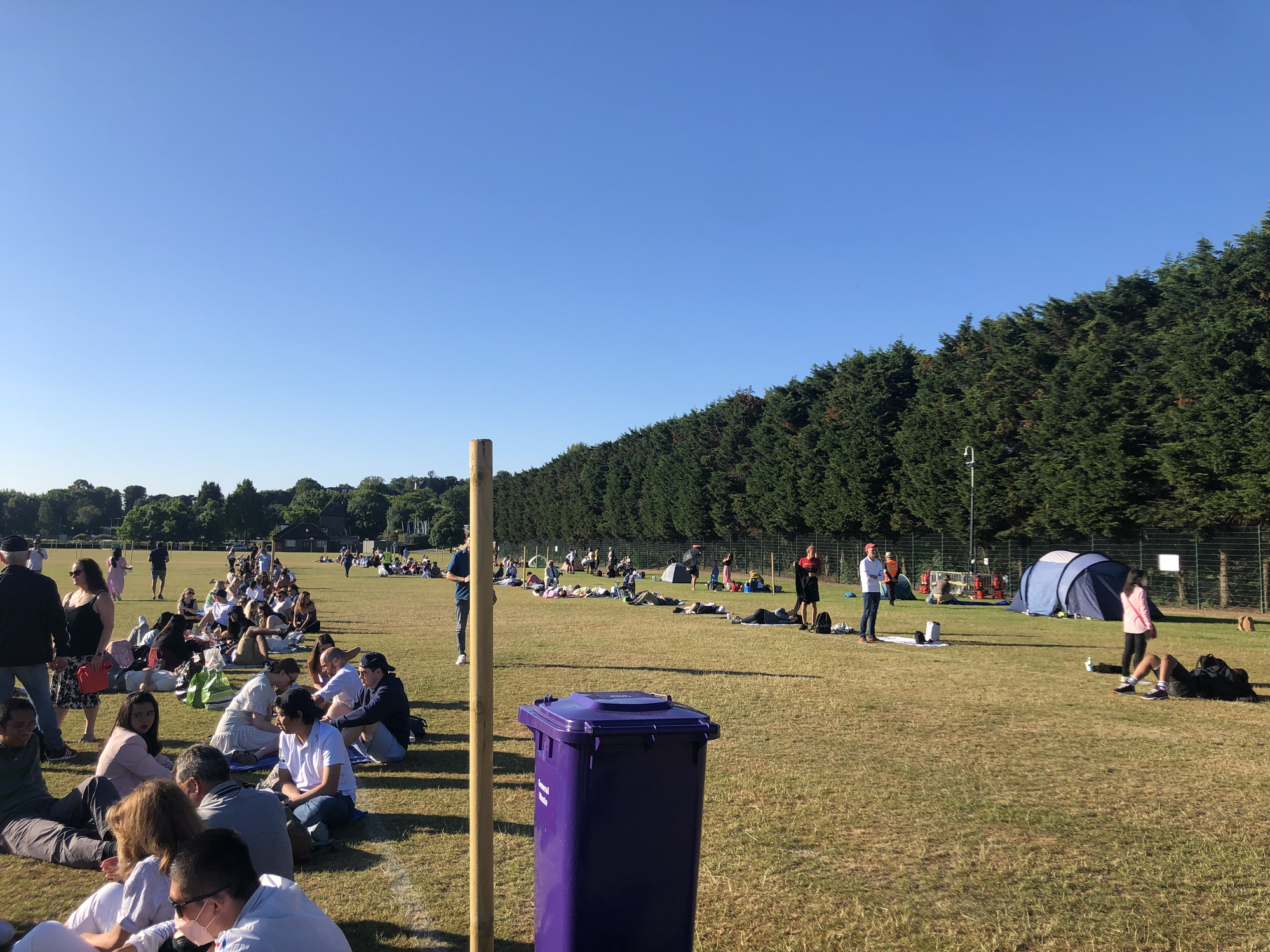 The queue is a Wimbledon tradition. People literally camp for days to get tickets to the biggest matches. See the tents?