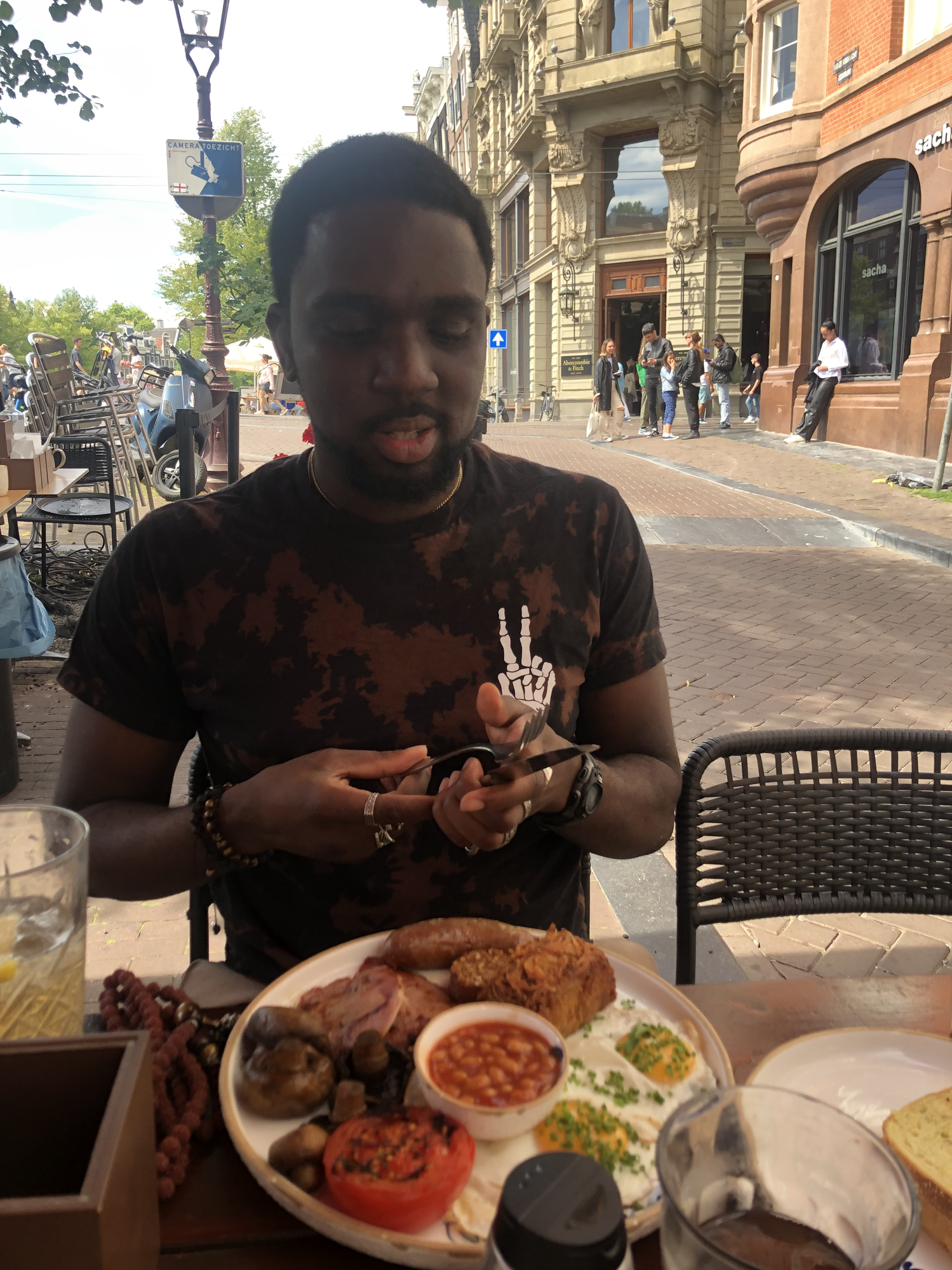 The first meal Tolu ate in Amsterdam was an English breakfast... right after leaving England.