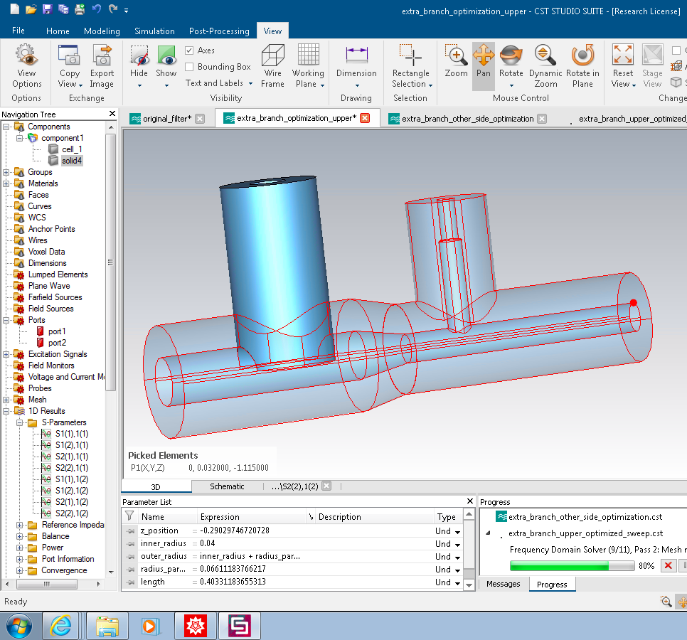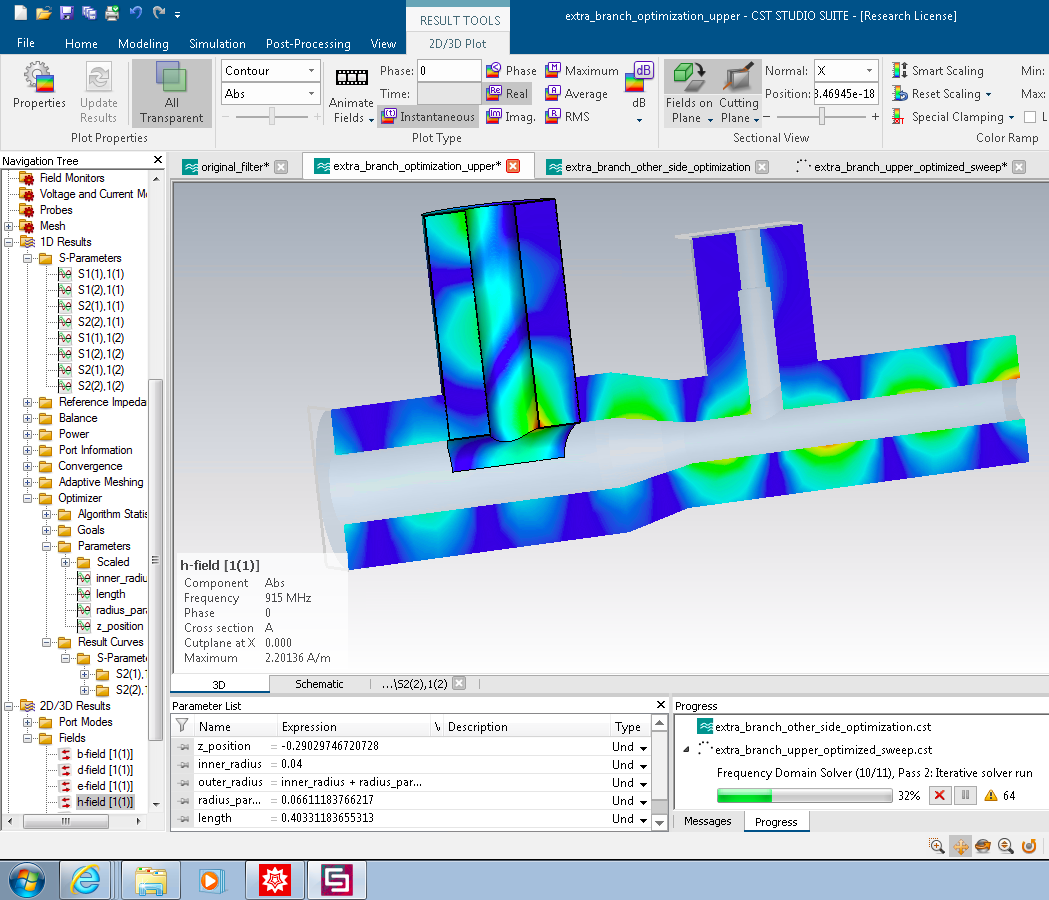 Here's a screenshot of the filter model attached to a 200 MHz cavity section.