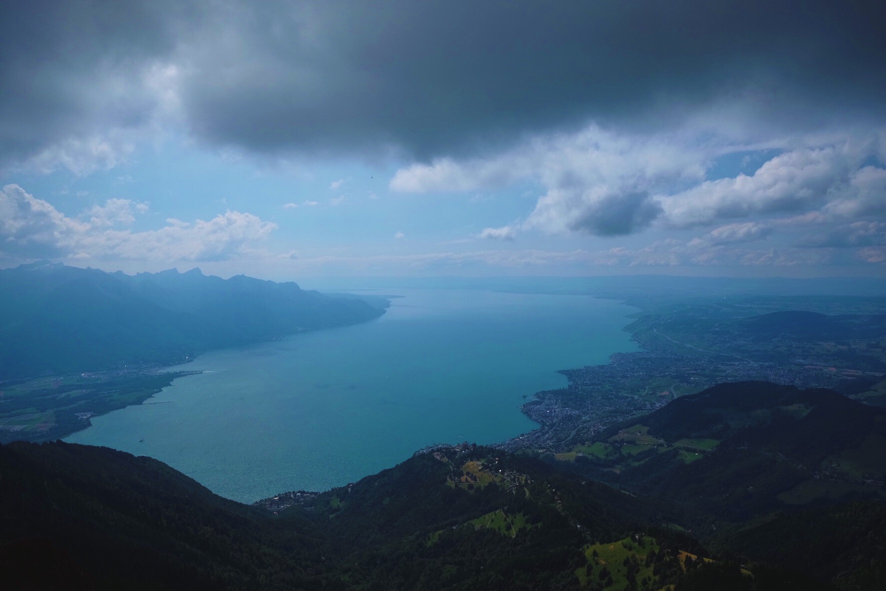This area behind Montreux is quintessential Switzerland -- mountains, cows, they even had fondue at the restaurant at the top.