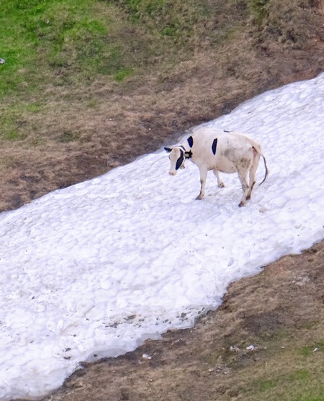 And cows, who were using the last bit of snow to stay cool.
