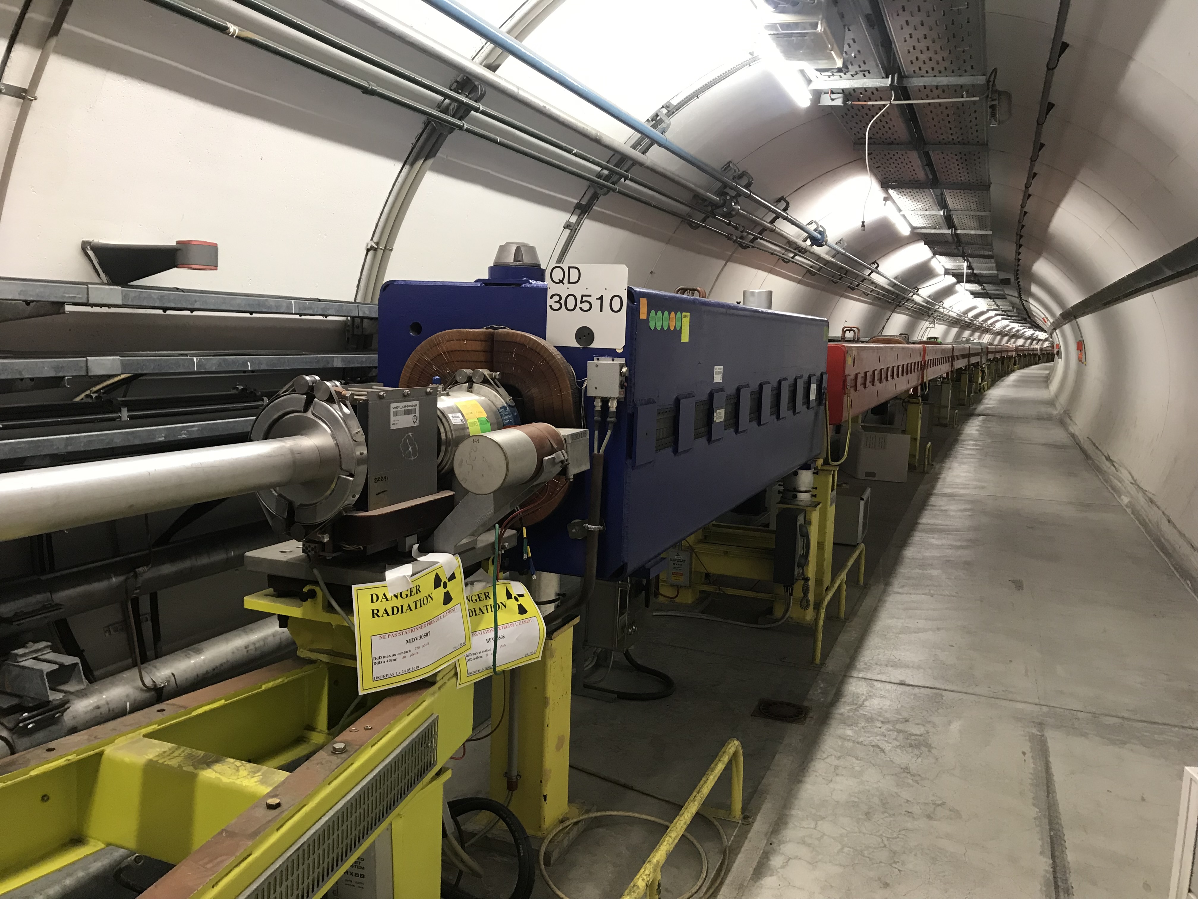 The spots where there is just a long metal tube (like above) are usually where they have taken a part out to work on it above ground. The whole accelerator is like a giant lego set. In general, you can take out parts and rearrange them and combine them in different orders to do different things better. But you have to be careful, because some areas are pretty radioactive.