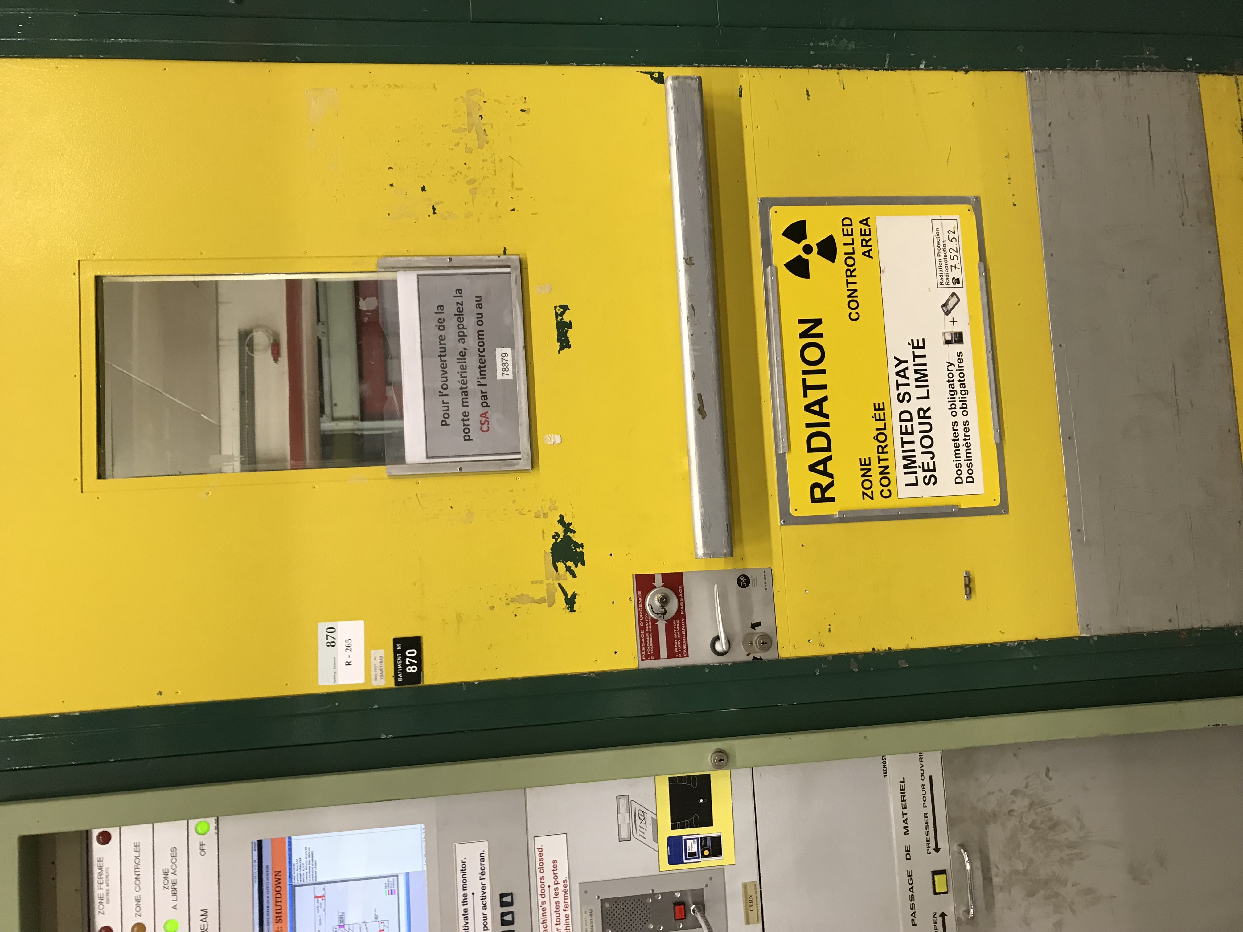 These are the radiation checkpoint doors. People swipe in and then go through the turnstyle, then when you're in you take all the equipment through the normal door.