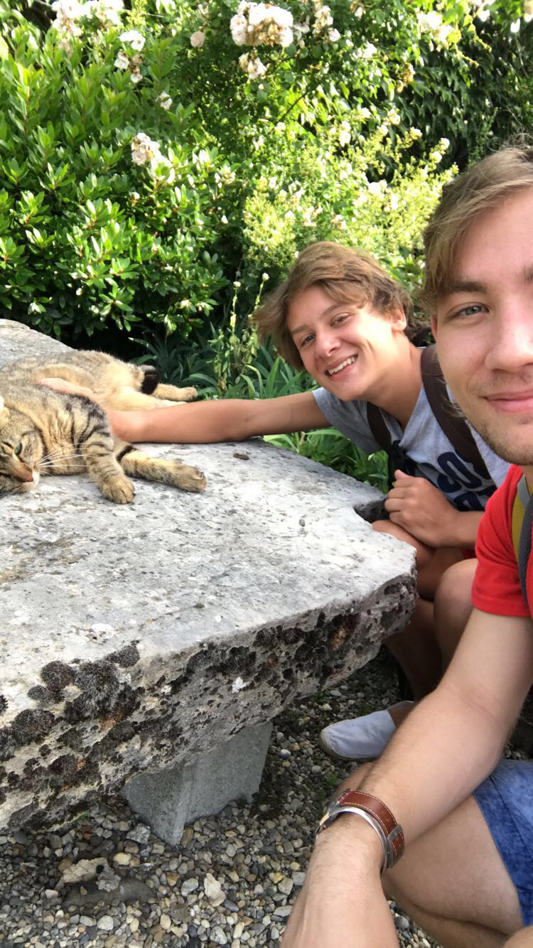 A cat came to the Muzy courtyard to hang out for a couple hours. His name is Dude. We know this because that's what his collar said. He would pretend that he wanted to be pet, but then he would try to scratch the crap out of you. Sneaky.