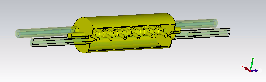 I'm testing it with computer simulations, using various combinations of lengths and shapes that are similar to the 200 MHz cavity, like the one below ⇩.